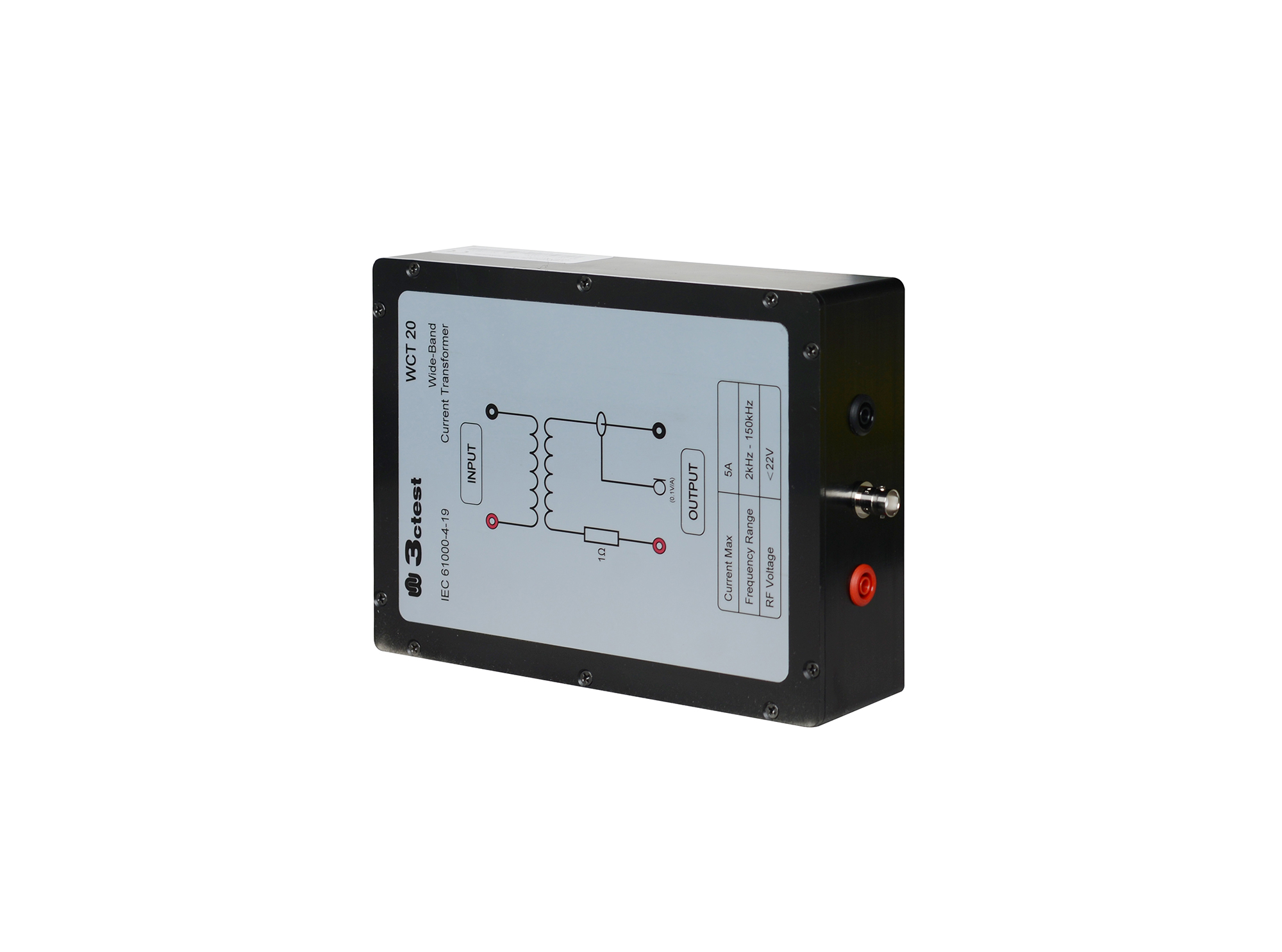 WCT 20宽带隔离变流器适用于IEC 61000-4-19差模电流传导抗扰度试验。该设备可以实现差模信号发生器与被试设备(EUT)的有效电气隔离,保障试验安全。