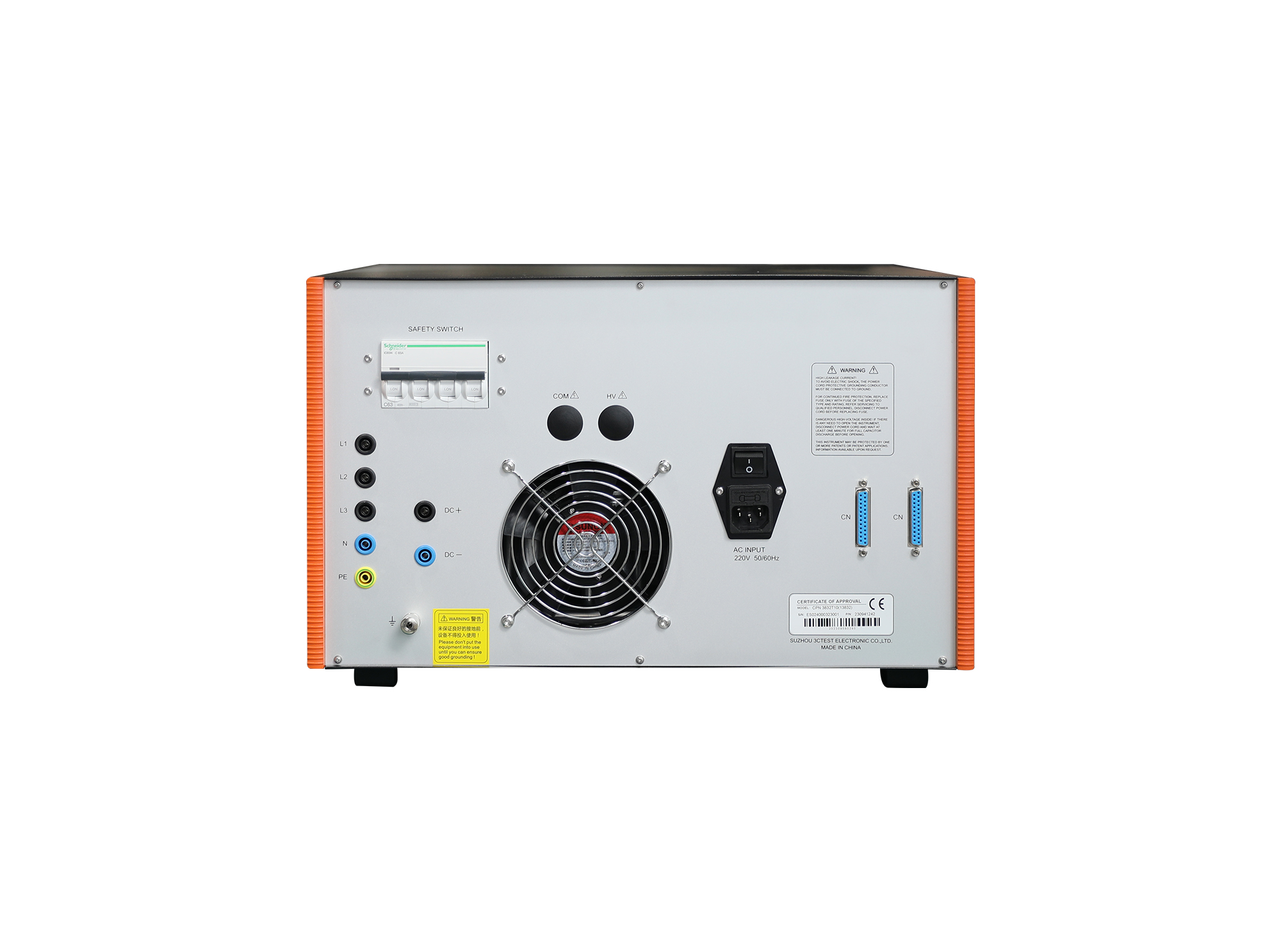 CPN 3832T10电流波耦合去耦网络,搭配主机S6C1000进行8/20μs电流波形测试,耦合脉冲电流最高可达10 kA。EUT最大带载能力AC 380V 32A三相五线、DC 380V 32A,设备操作简单快捷,可靠性强。