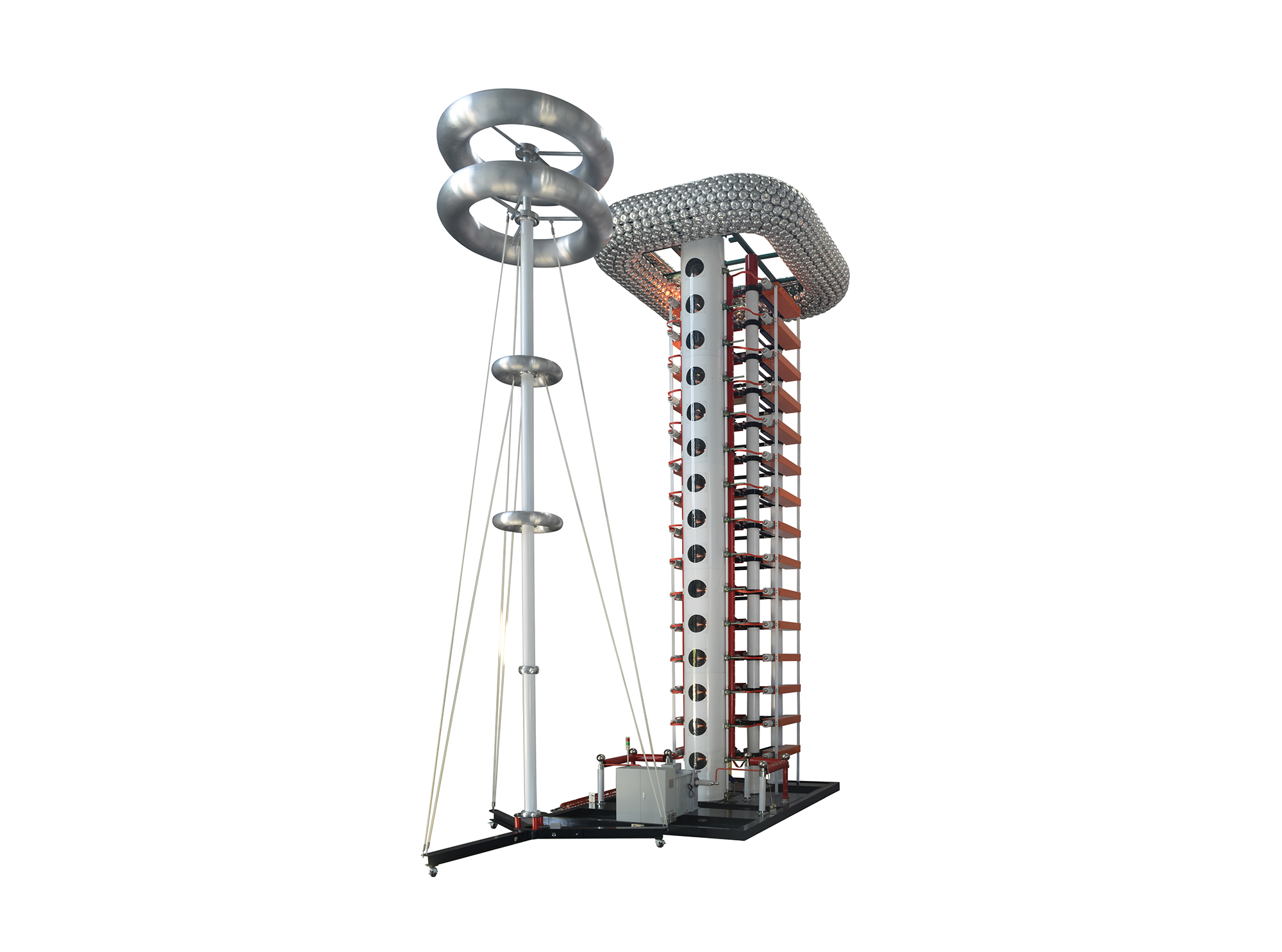 飞机在强对流天气飞行时,容易受到雷电的直接附着作用,产生高温、高压和强电磁力,对飞机造成燃烧、溶蚀、爆炸、结构畸变和强度降低等效应。我司自主研发的高电压附着点分区试验系统,可模拟测试飞机等设备在遭受雷击时,在飞机表面不同区域可能被雷电袭击的概率,找到容易被雷电袭击的附着点,完全符合GJB 1389A,GJB 3567等国军标标准,同时也满足美军标MIL-STD-464C、航空系统SAE ARP5416、DO 160 section23等飞机雷电试验标准要求。可应用于飞机整机、航空航天材料、舰船、导弹、军用车辆、雷达等设备设施。